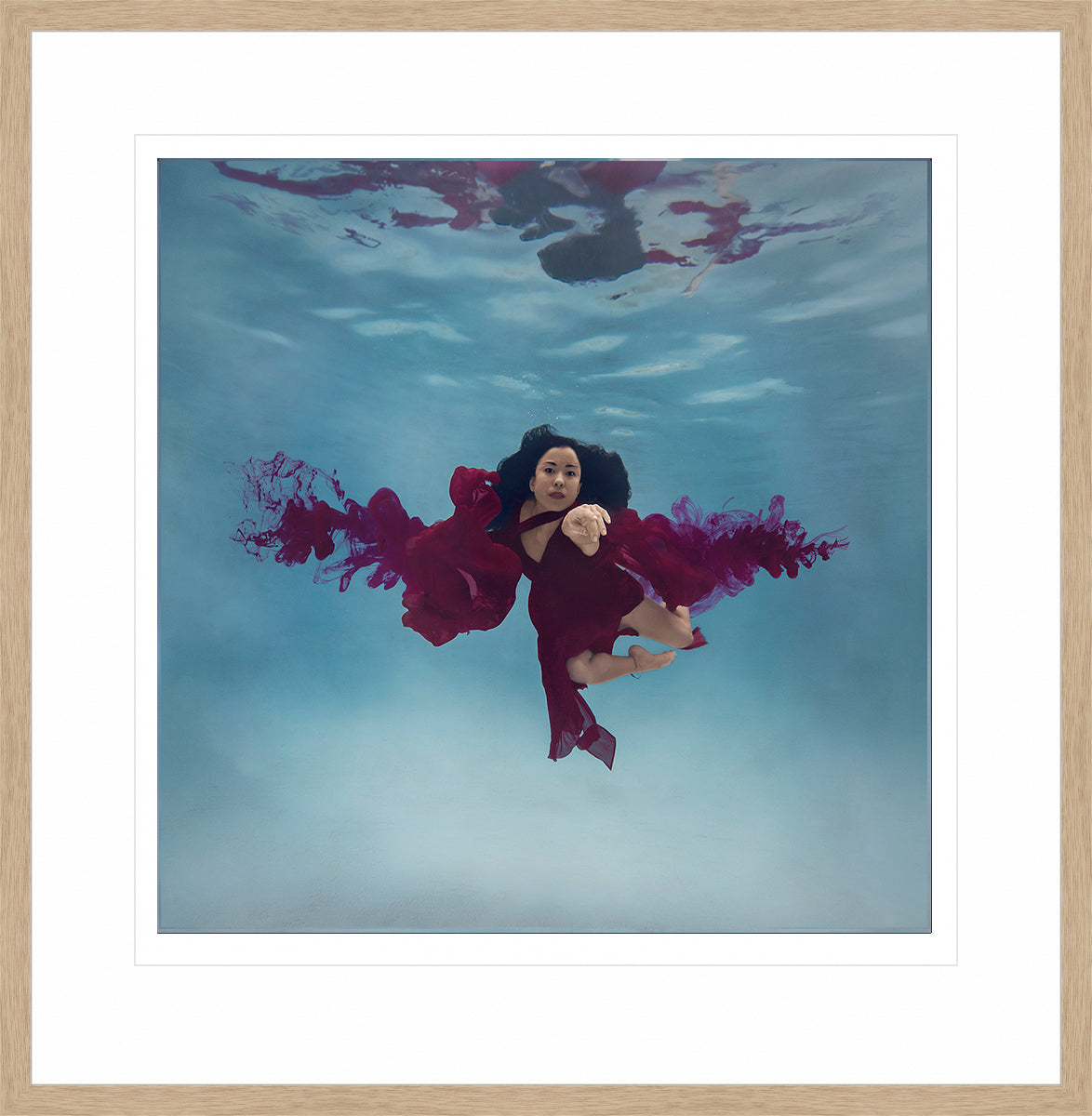 I’ve always been drawn to the calm of underwater imagery - the quiet isolation, the slowed movements and the hypnotic flow of hair and fabric that feel like flying in slow motion. Working with ink in water adds another layer of unpredictability, creating organic, one-of-a-kind forms. It felt natural to combine these elements, blending the softness of fabric with the fluidity of ink. By manipulating colour and skin tones, I aim to heighten that sense of vulnerability and calm, offering moments of grace in a turbulent world.