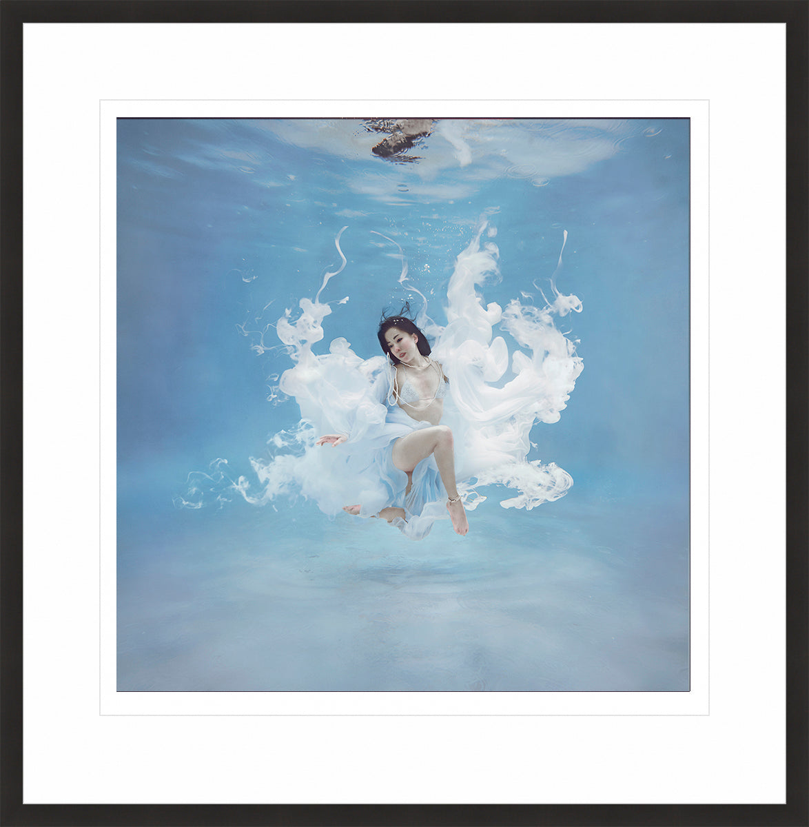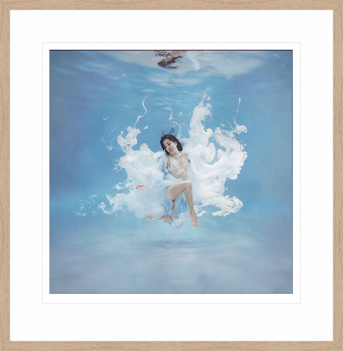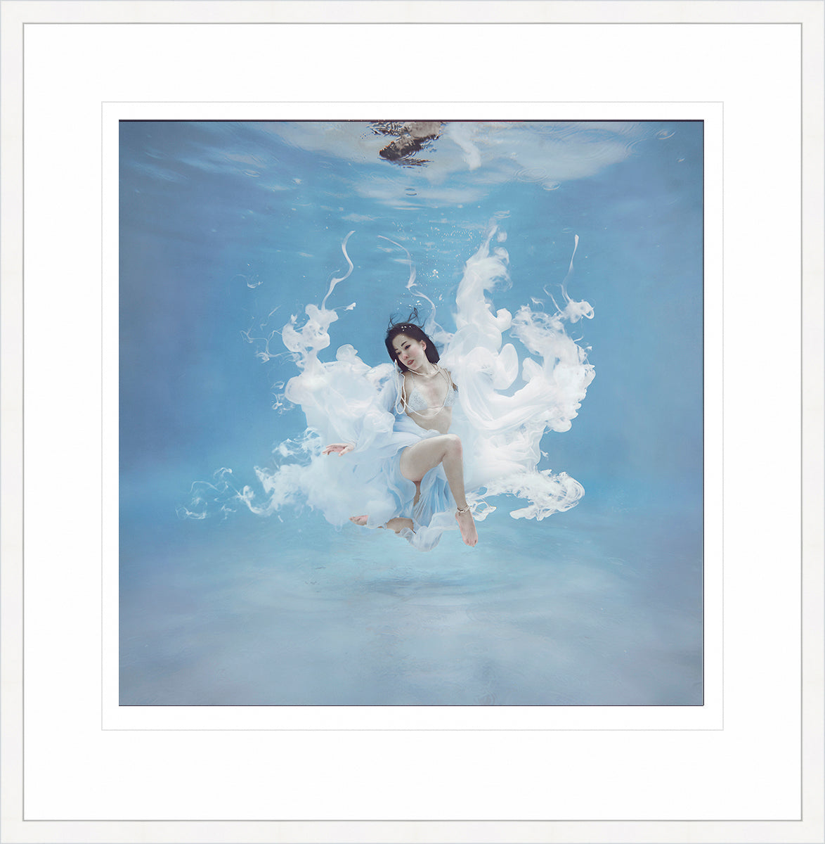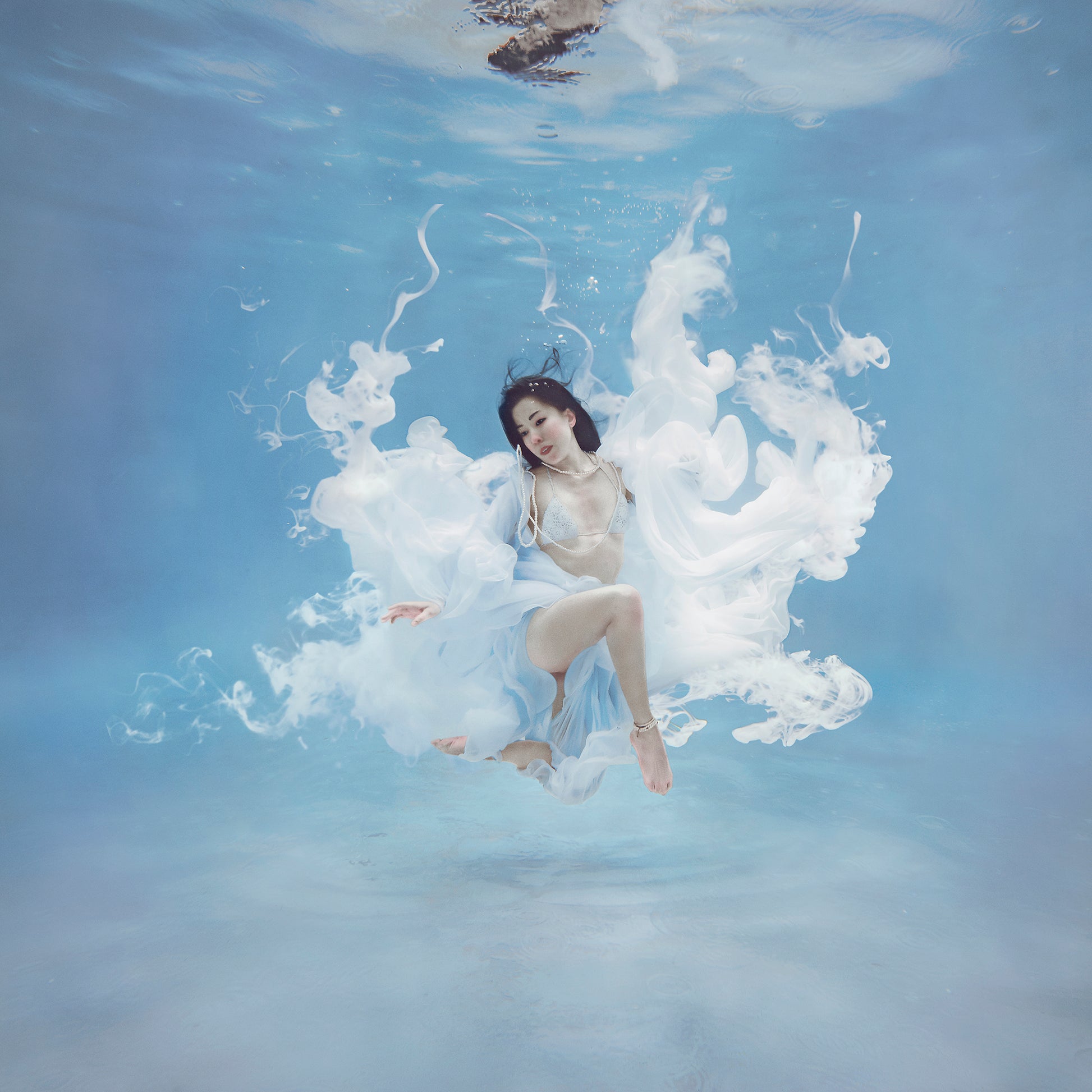 I’ve always been drawn to the calm of underwater imagery - the quiet isolation, the slowed movements and the hypnotic flow of hair and fabric that feel like flying in slow motion. Working with ink in water adds another layer of unpredictability, creating organic, one-of-a-kind forms. It felt natural to combine these elements, blending the softness of fabric with the fluidity of ink. By manipulating colour and skin tones, I aim to heighten that sense of vulnerability and calm, offering moments of grace in a turbulent world.