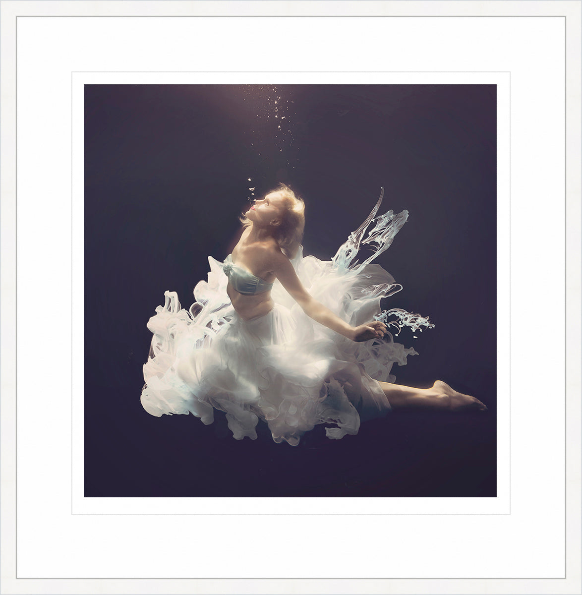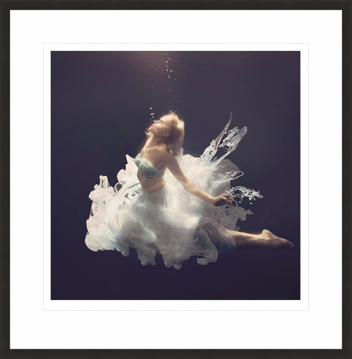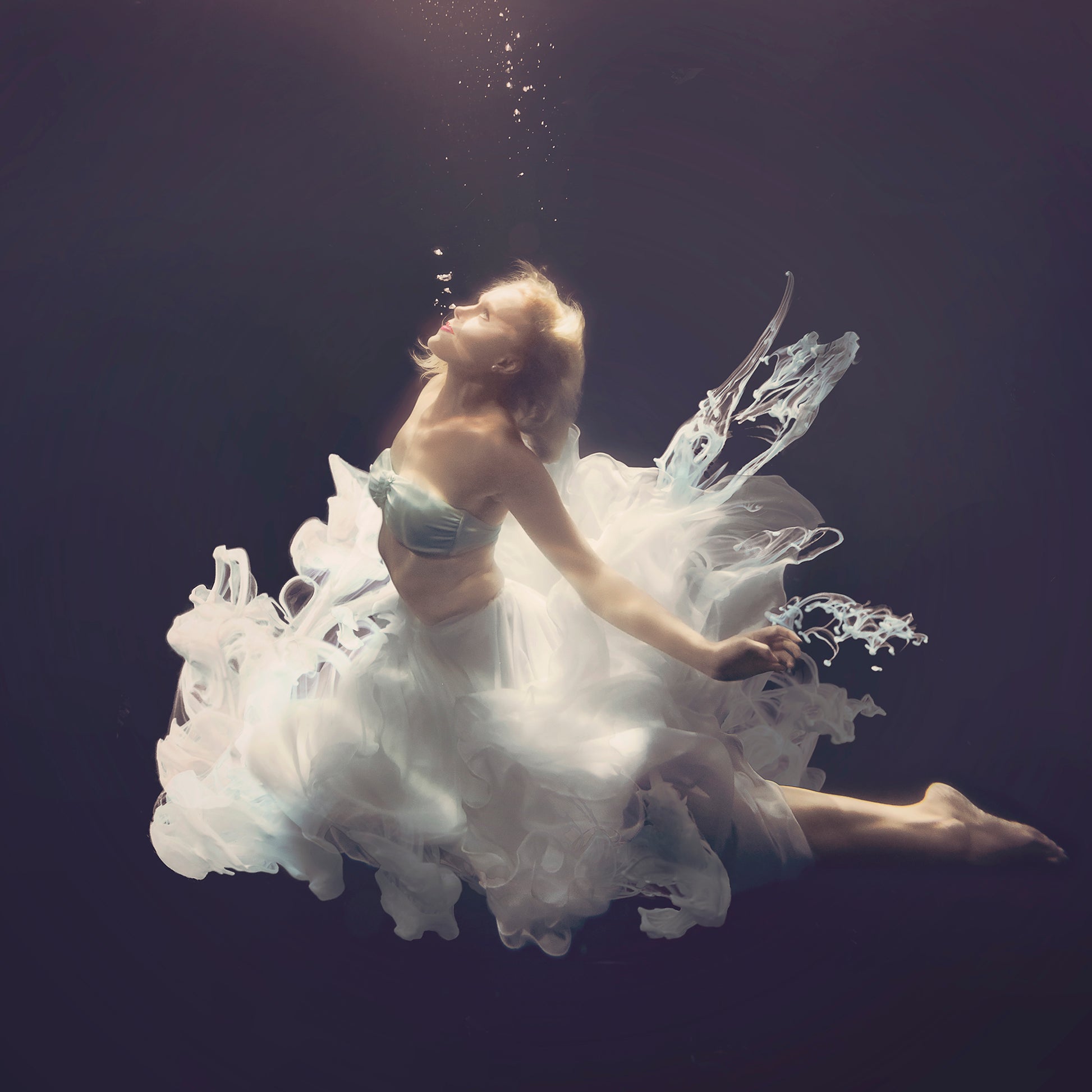 I’ve always been drawn to the calm of underwater imagery - the quiet isolation, the slowed movements and the hypnotic flow of hair and fabric that feel like flying in slow motion. Working with ink in water adds another layer of unpredictability, creating organic, one-of-a-kind forms. It felt natural to combine these elements, blending the softness of fabric with the fluidity of ink. By manipulating colour and skin tones, I aim to heighten that sense of vulnerability and calm, offering moments of grace in a turbulent world.